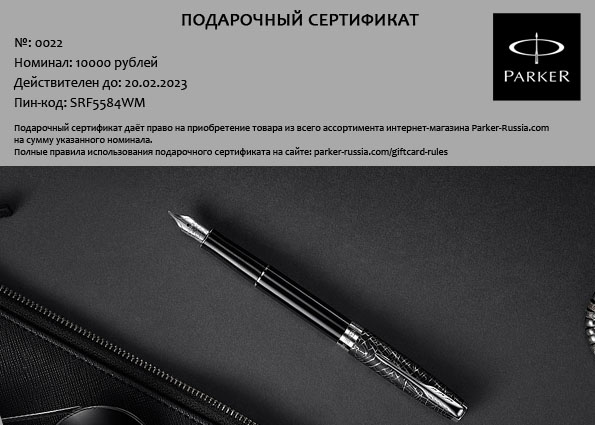 Подарочная карта Parker - Официальный дилер PARKER в Королеве