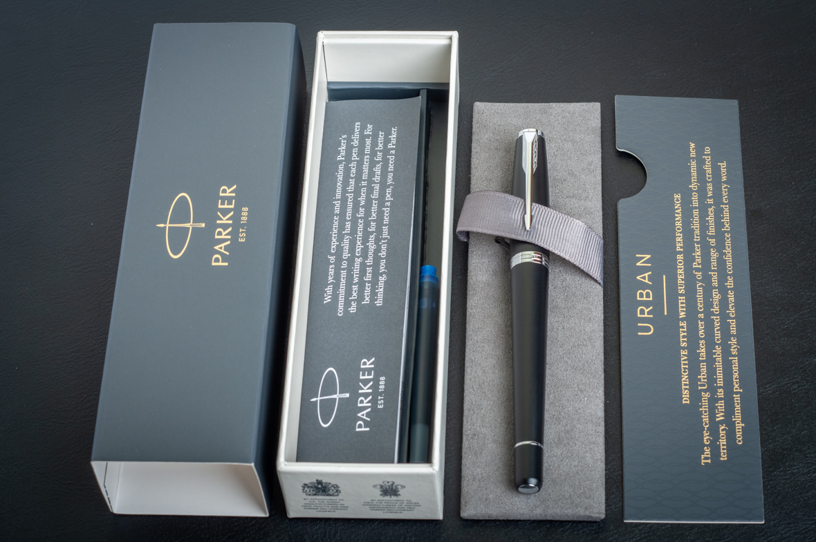 Перьевая ручка Parker Urban Muted Black CT от официального дилера Parker в Королеве. Вы можете дополнительно заказать гравировку, которая подчеркнет Вашу оригинальность и придаст памятность статусному подарку. Все ручки Паркер поставляются в фирменном футляре.