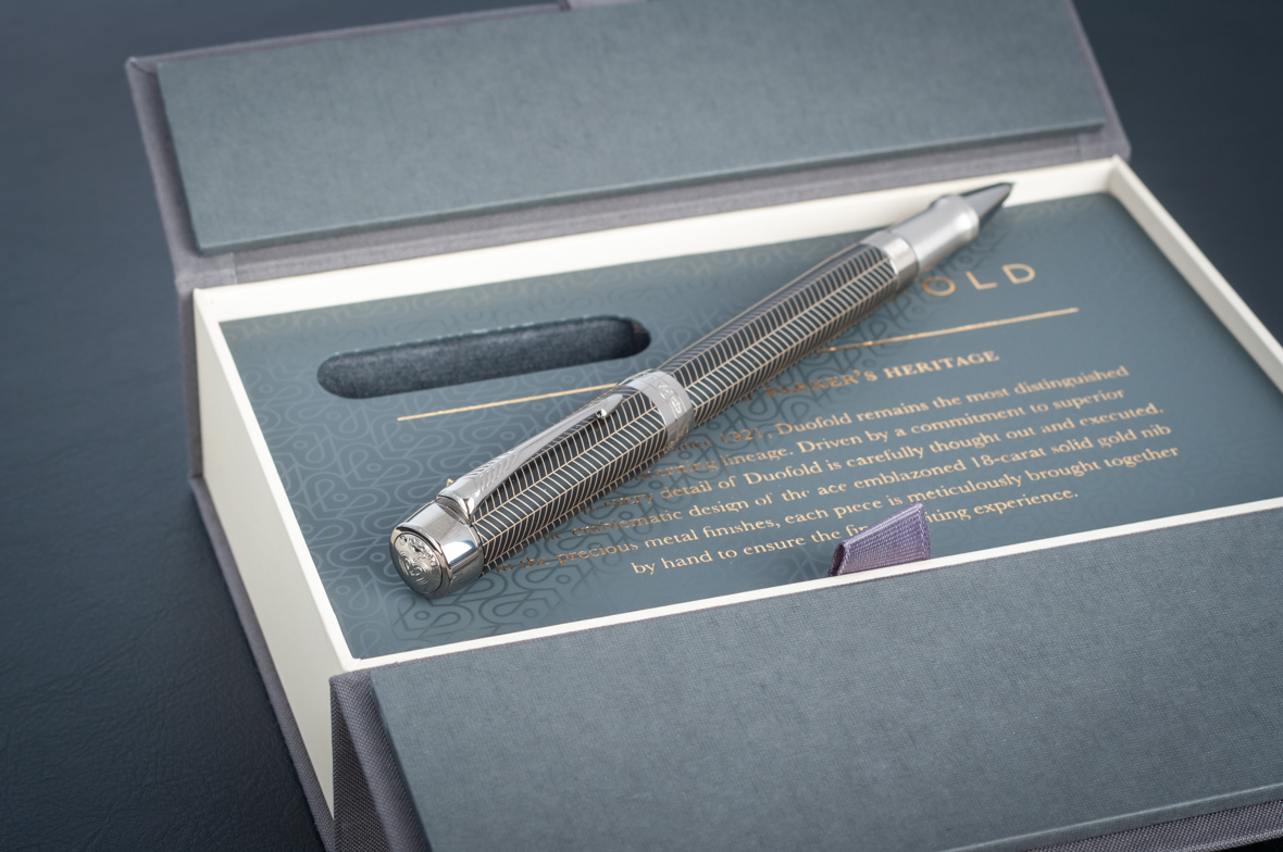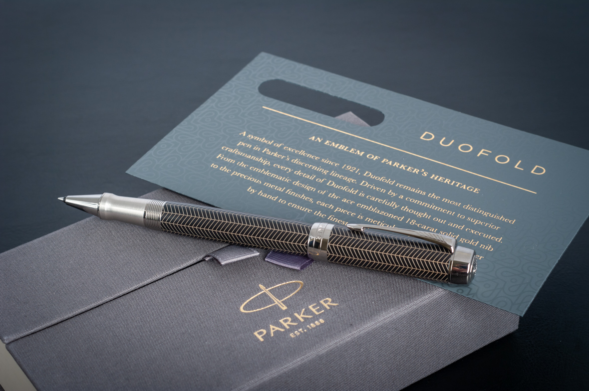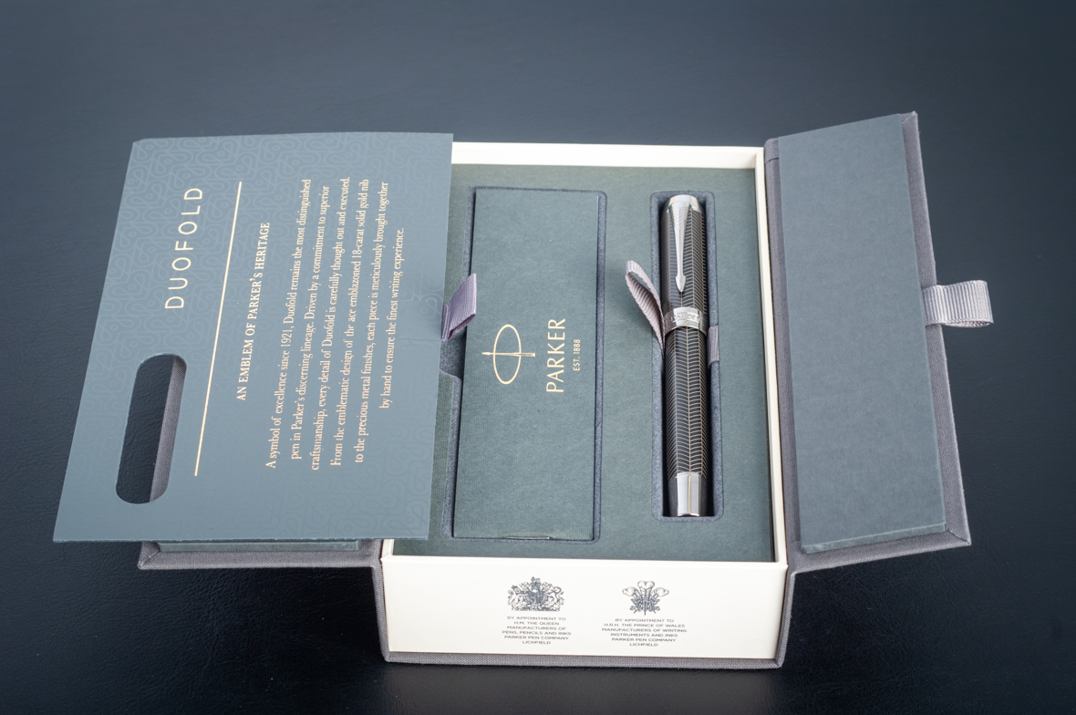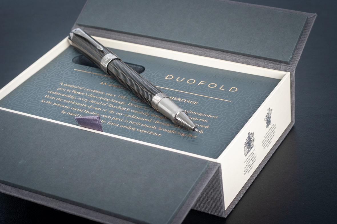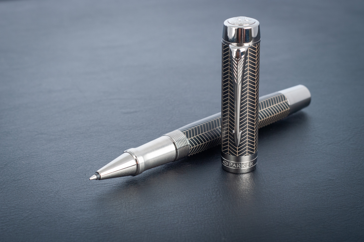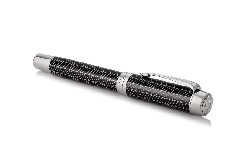 Ручка роллер Parker Duofold Prestige Centennial Black Chevron CT от официального дилера Parker в Королеве. Вы можете дополнительно заказать гравировку, которая подчеркнет Вашу оригинальность и придаст памятность статусному подарку. Все ручки Паркер поставляются в фирменном футляре.