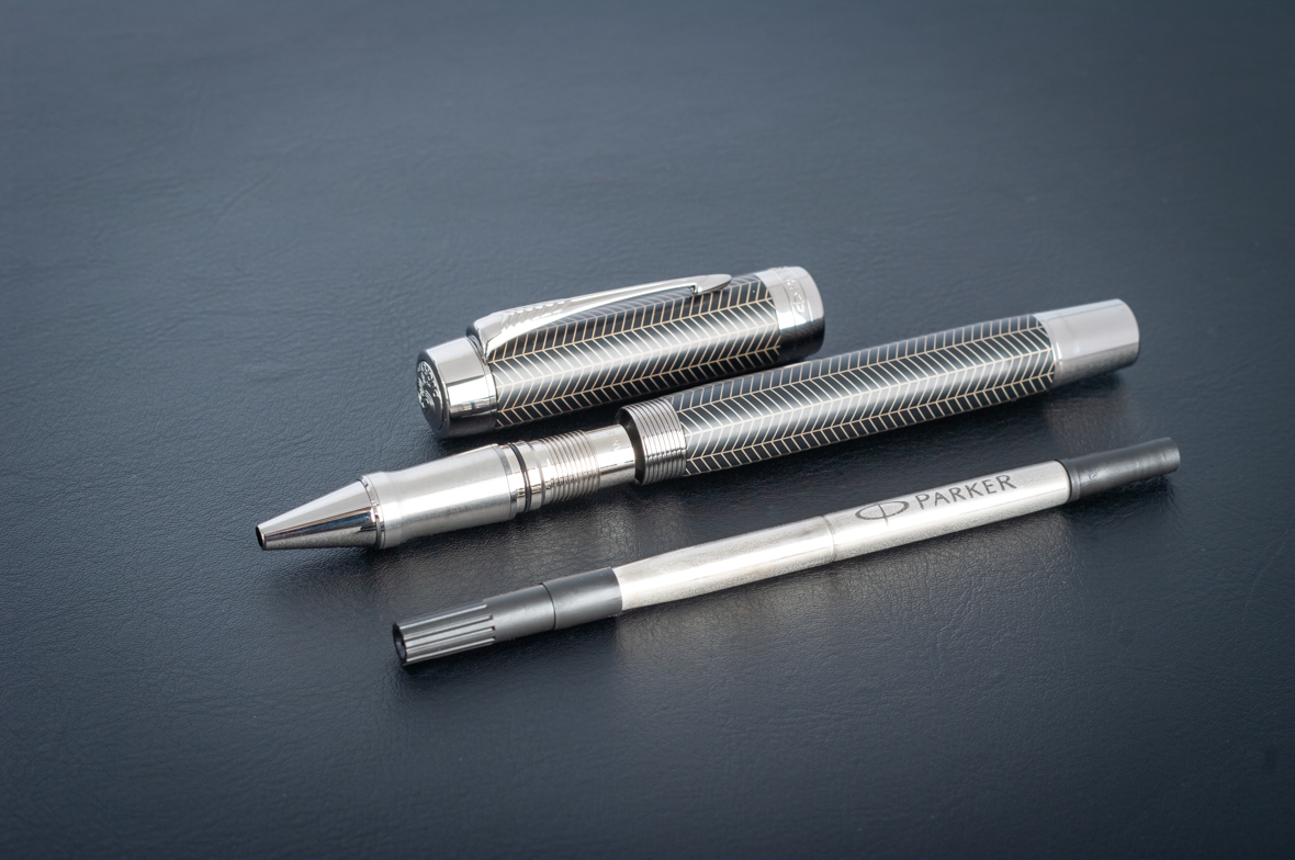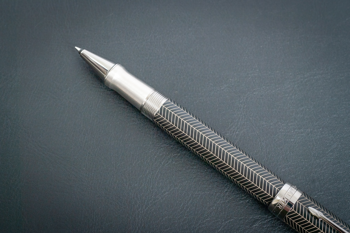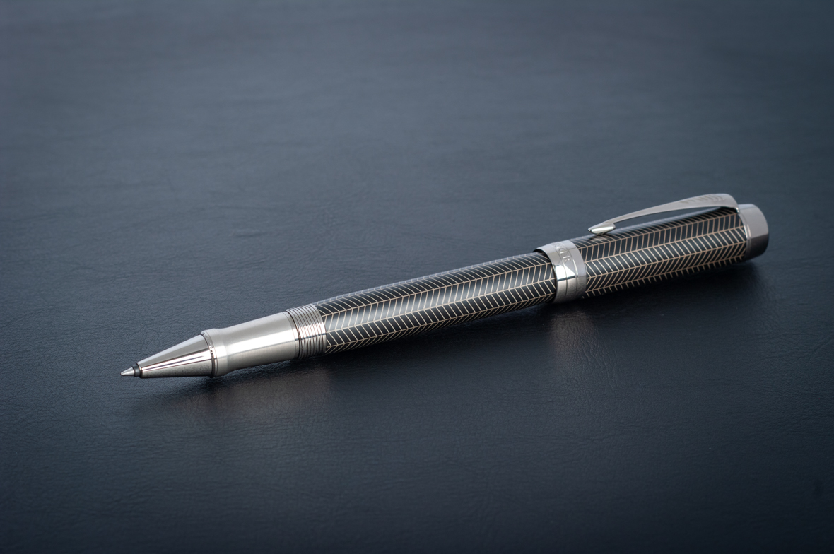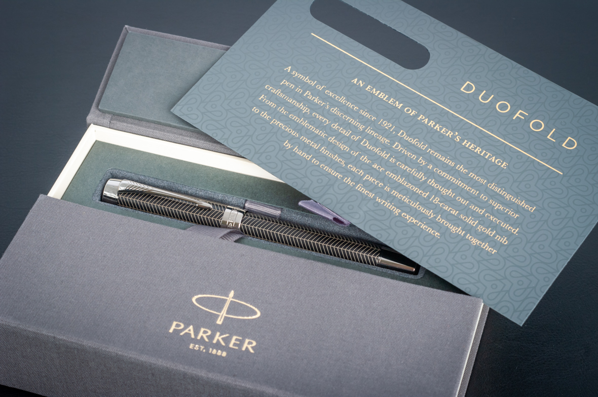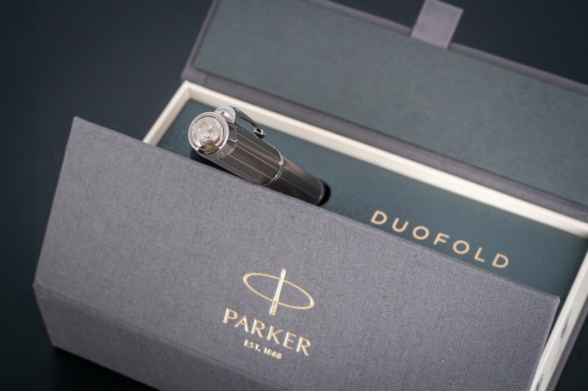 Ручка роллер Parker Duofold Prestige Centennial Black Chevron CT от официального дилера Parker в Королеве. Вы можете дополнительно заказать гравировку, которая подчеркнет Вашу оригинальность и придаст памятность статусному подарку. Все ручки Паркер поставляются в фирменном футляре.